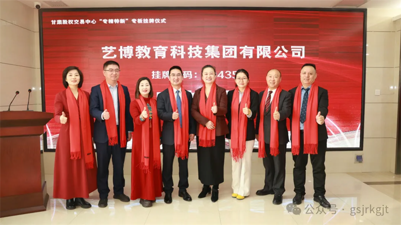 一元復始,歲華新至。2026年開篇之月,藝博教育科技集團有限公司(以下簡稱“藝博集團”)在甘肅省“專精特新”專板掛牌儀式圓滿舉行。藝博集團董事長盧永鋒及甘肅股權交易中心主要負責任人出席儀式并致辭,藝博集團總經理魏明雪及核心骨干共40余人參加此次活動。